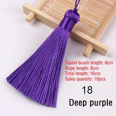 10pcs Silk Tassel Fringe Sewing Bang Tassel Trim Key Tassels For DIY Jewelry Making Home Curtain Craft Decor Accessory Tassels 1) Material:Polyester silk Tassels 2) Colors:28 Colors 3) Packing:Separate packing of OPP bag 4) Size: Tassels Spike Length 8cm,Tassels Spike Diameter 12mm,Tassels Hanging rope Length 7~9cm 5) Weight: About 7g/pcs opp/bag 6) Color issue:The Real Item color which you acquire perchance little range from the directory photograph thanks to diversified Camera lens, and different gentle environments Thanksyou're your understanding! 7) We can provideDrop Shipping