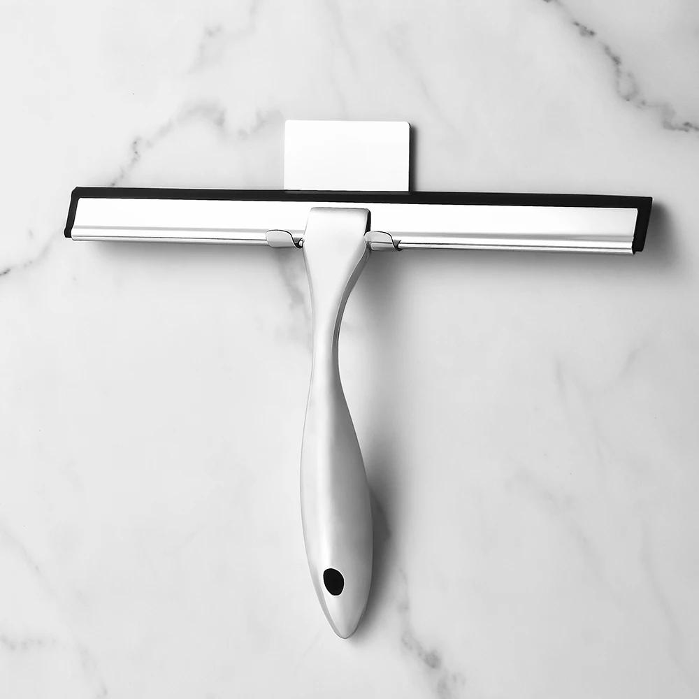 12'' INCH Stainless Steel Shower Squeegee with Adhesive Hook Silicone Blade Rubber Wiper Window Tile Wall Mirror Car Cleaning