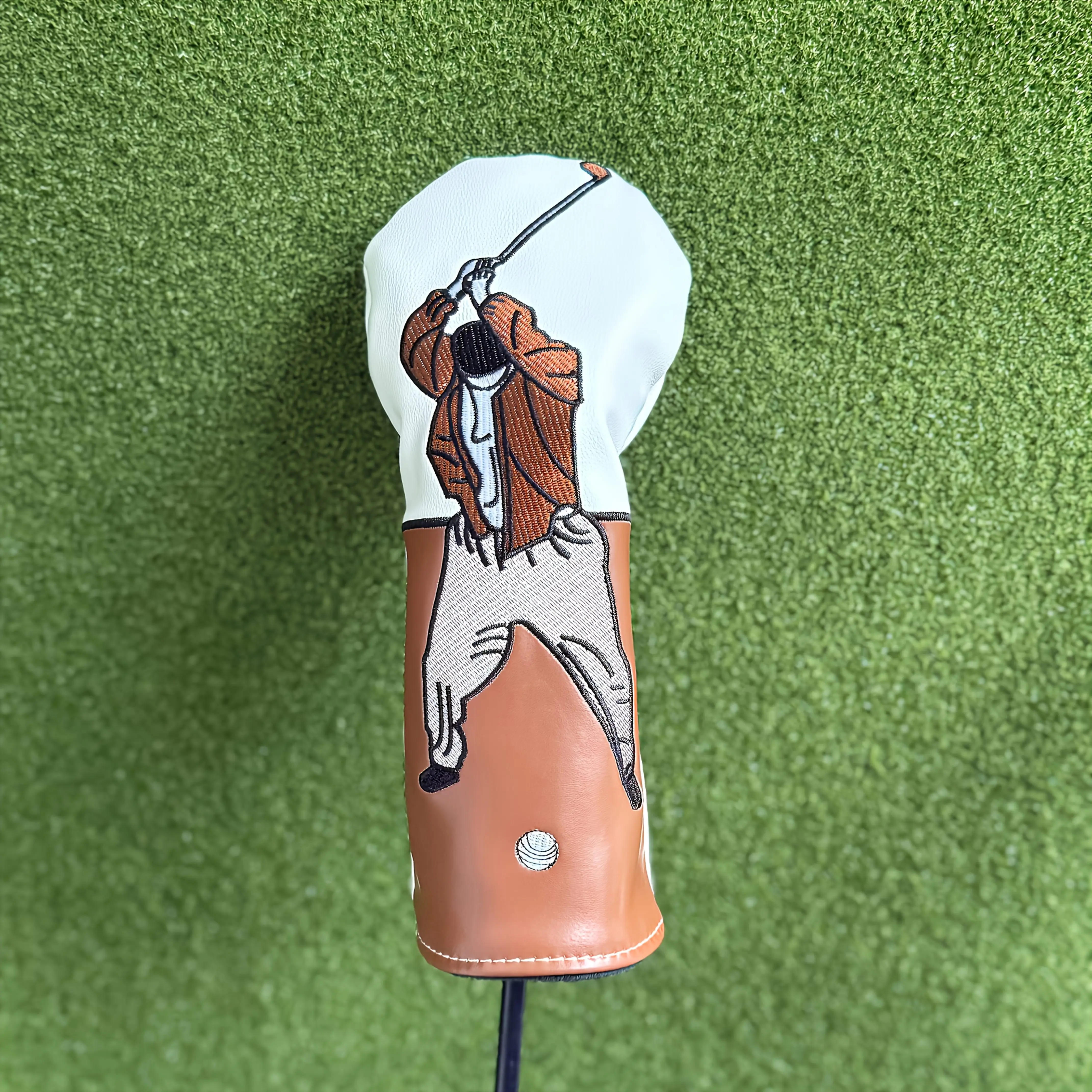 1pc High-Quality Golf Head Cover with Exquisite Embroidery - Ultra-Soft Plush Lining, Durable PU Protective Case - White, Ideal