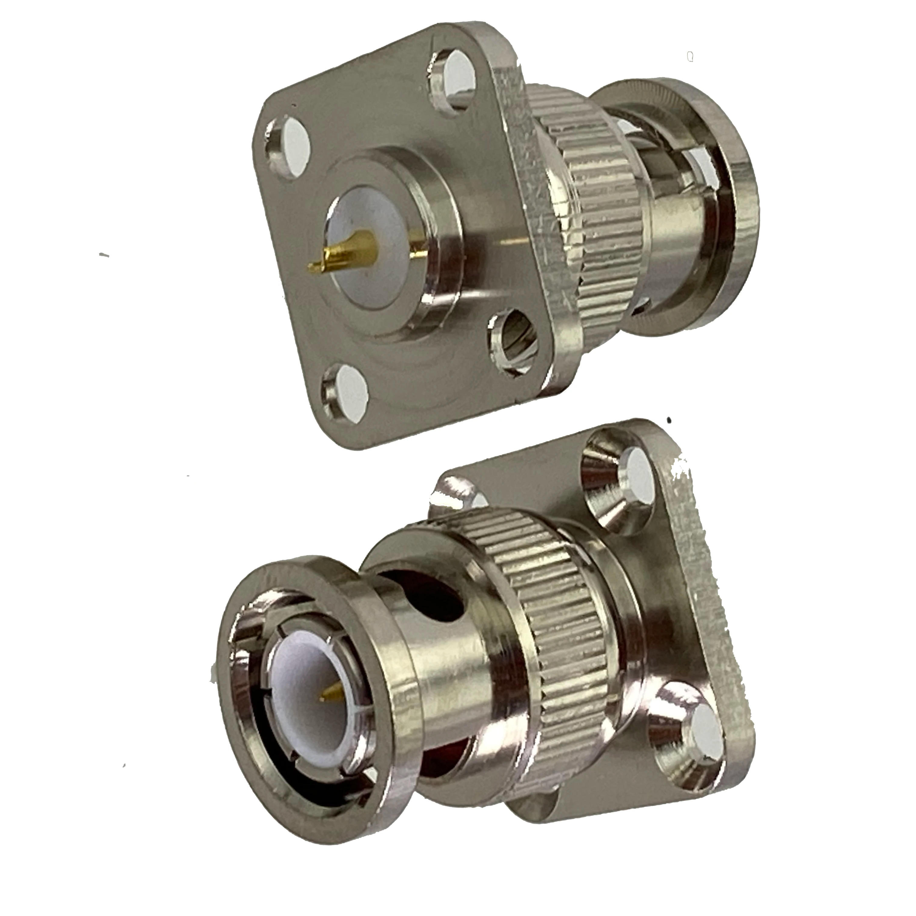 1pcs Connector BNC Plug Male 4 Holes Flange Solder Pancel Mount Wire Terminals Straight RF Coaxial Adapter New