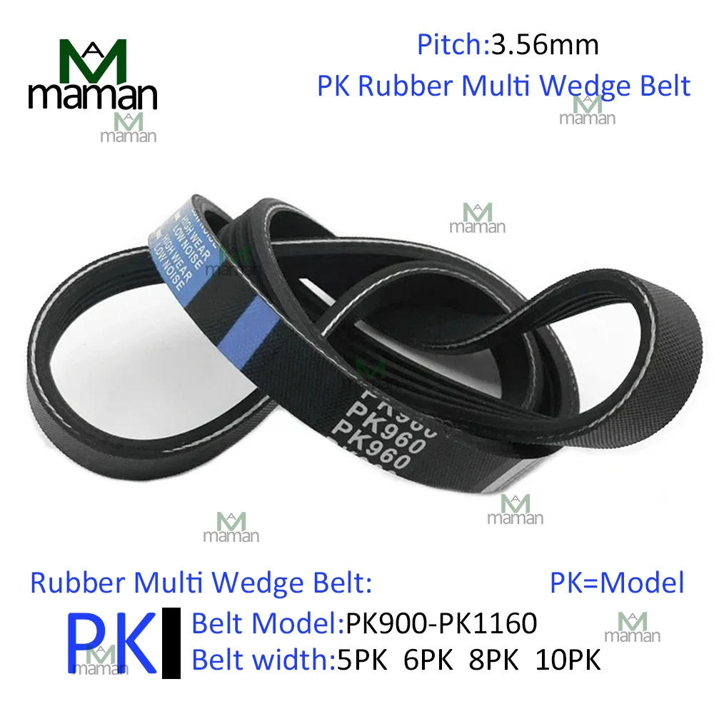 1PCS PK Ribbed Rubber Multi Wedge Belt Groove 5PK 6PK 8PK 10PK Length=PK900~PK1160 Suitable for Industrial Transmission Belts