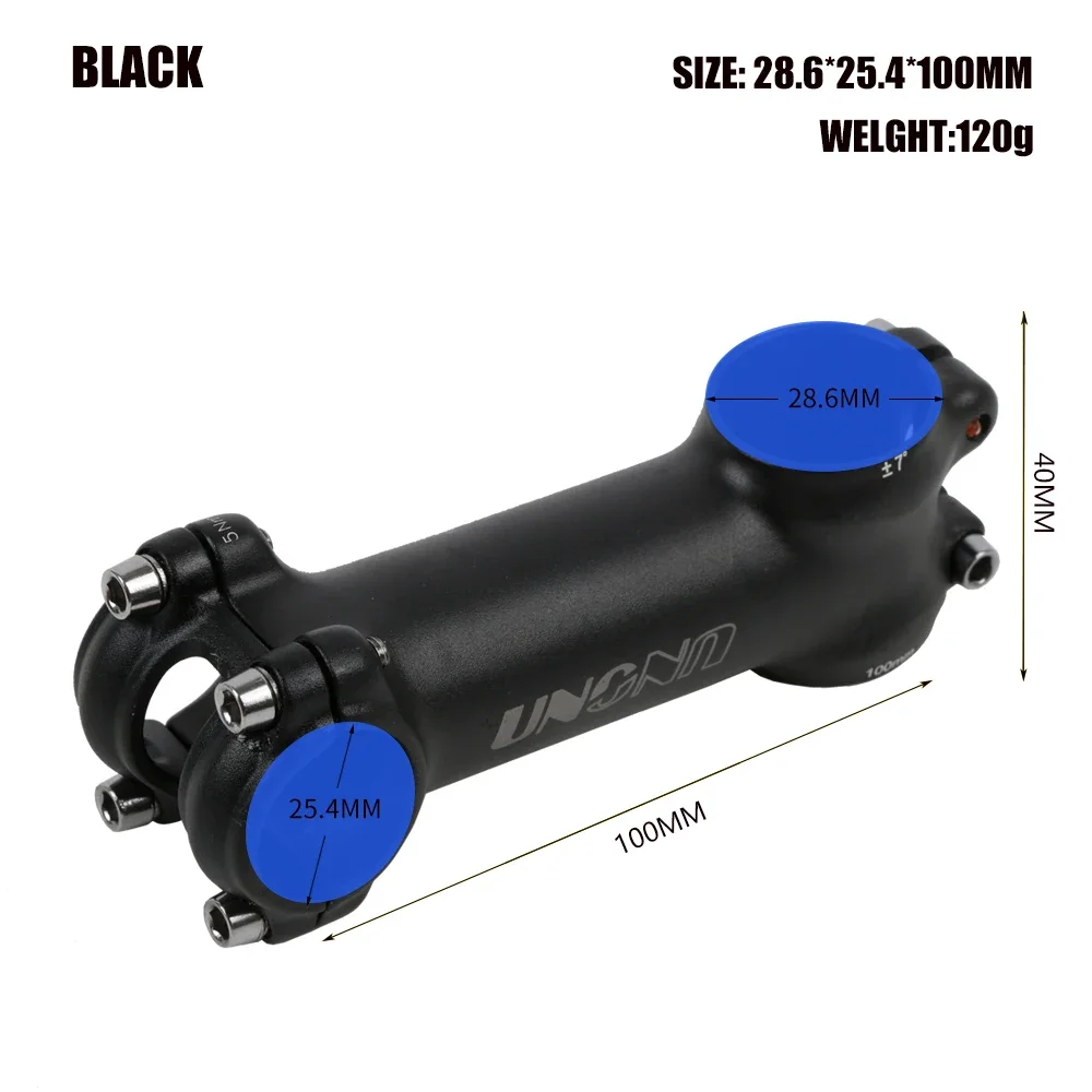 2021 UNO Ultralight Aluminum Bicycle Stem MTB Bike Stem 28*25 60-130mm +/- 7Degree Handlebar Stem Cycling Bike Accessories Brand : UNO Model AS007N Material: 3-D Forged 6061-T6 Aluminum Alloy Size : 60/70/80/90/100/110/120/130mm (25) Angel: 7 Degree Diameter: 25 Steerer: 28/25 Height : 40mm Weight: about 117g(90*7 degree)
