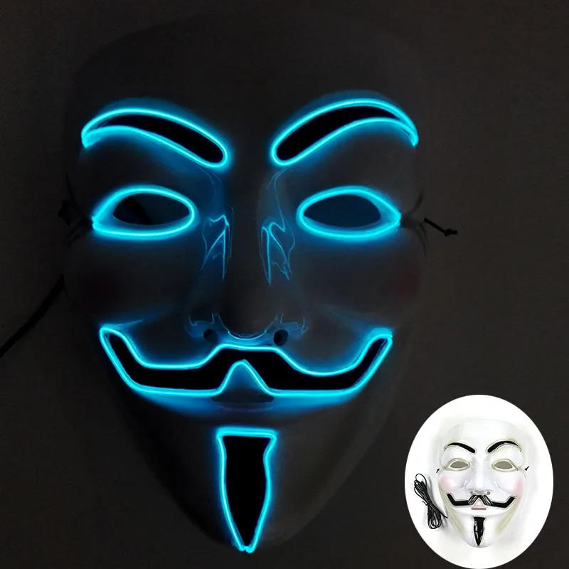 2024 Hot LED Hacker V Vendetta Mask Adults Luminous LED Light Up Mask For Glow Party Costume Accessories Halloween Mask Décor