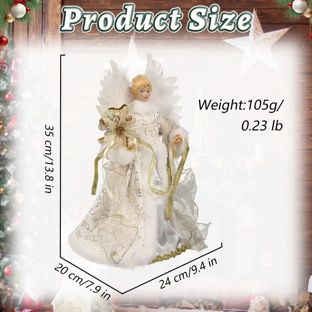 2025 Christmas Tree Topper Angel Fairy With White Feather Wings no mild 3d Christmas Tree Top Decoration Ornament Bullet Points: 1 Serenity: Get attractd by the fragile fantastic thing about this angel tree topper that brings a touch of peacefulness and radiance to your Christmas setting, making it extra chic and serene 2 Angel Glow: Featuring movable hands, an elegant golden layered dress, white feather wings, and rosy cheeks and blonde hair, it provides a splash of magnificence to your festivities 3 Time & Effort: The transparent inverted cone below her dress guarantees a perfect fit for 3-5 ft trees Enjoy easy set up and save time this holiday season 4 Festive Elegance: Placed atop your tree, this angel accentuates your corner area with a chic and adorable design, turning your decor into a enthralling Christmas scene With its charm, it instantly creates a festive environment five And Thoughtful Present: Radiating grace and beauty, it is the perfect realistic and thoughtful reward to ship them day-after-day surprises, and send care and blessings which will become a centerpiece of their vacation celebrations for years Add a touch of magnificence and comfort for your vacation decor with our charming angel tree topper Perfect for 3-5 foot Christmas trees, this topper adds either cuteness and elegance to your tree This angel will send care and blessings to your relatives during the vacation season Product: Christmas tree topper angel Material: Fabric + ABS Product size: about 33/13 inches list: Christmas tree topper angel*1 piece