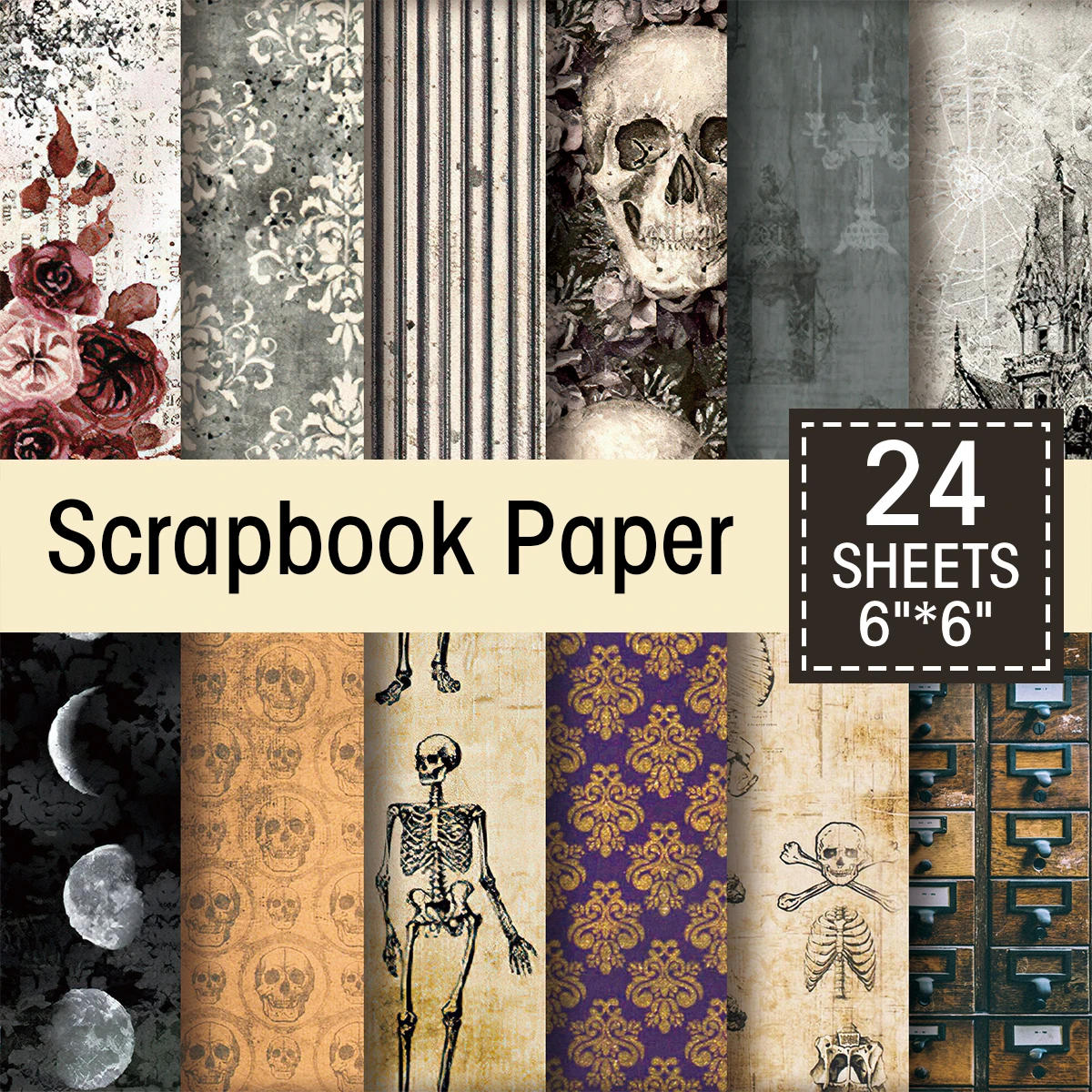 24 pcs Vintage Scrapbooking Paper Set DIY Material Paper Halloween Decorative Antique Retro Art Craft Embellishment Supplies