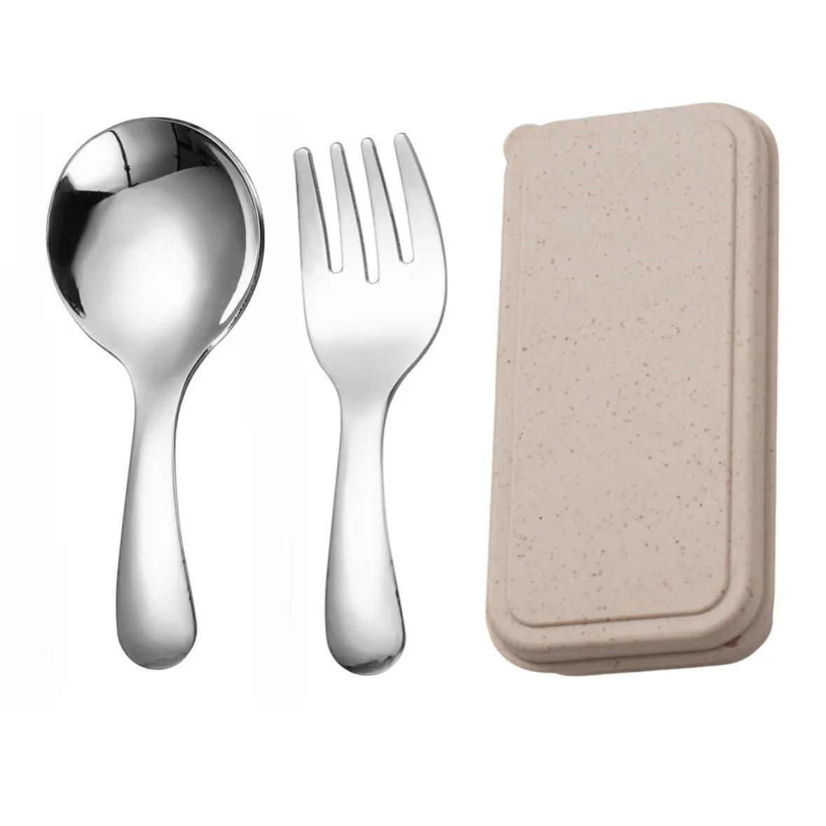 2pcs/box Dinnerware Portable Fork Spoon Stainless Steel Cutlery Dessert Round Spoon Fork Camping Steak Cutlery with Box Description Name: quick manage spoon and fork set Material: 304 stainless steel Process: one-piece molding without welding Color: Sliver Set: spoon, fork Size: Fork: 10*3CM Spoon: 10*4 Lunch box: 14*6CM
