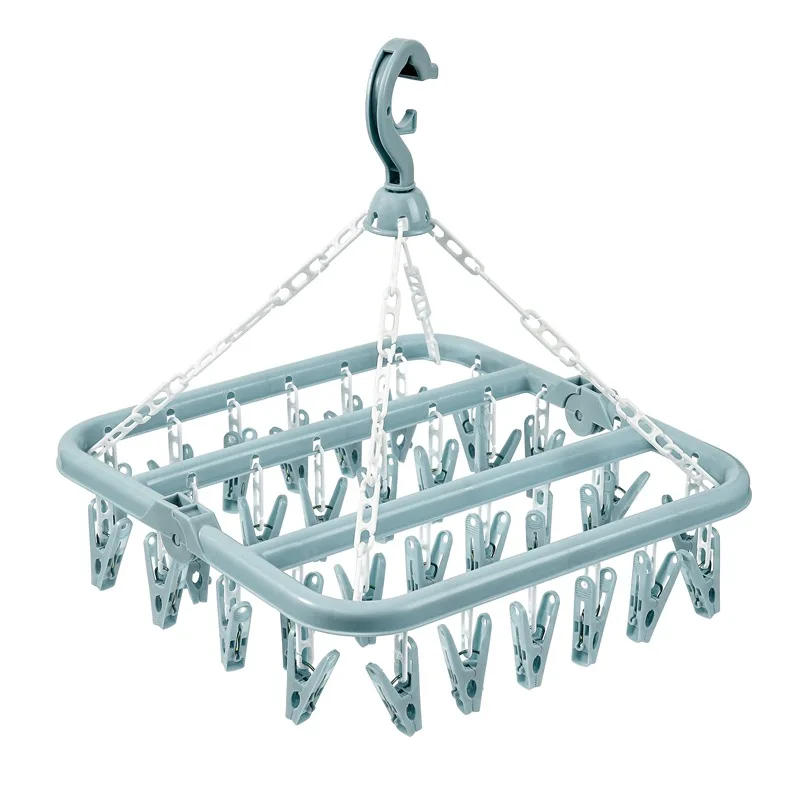 32 Clips Clothes Drying Hanger PP Windproof Clothespin for Underwear Sock Household Foldable Multi Functional Laundry Racks