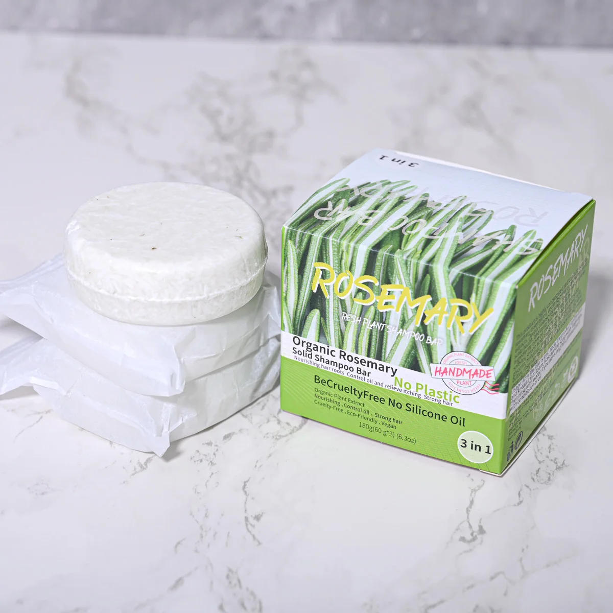 3pcs set of rosemary plant extract essential oil shampoo soap, oil control refreshing solid shampoo soap, silicone free and resi