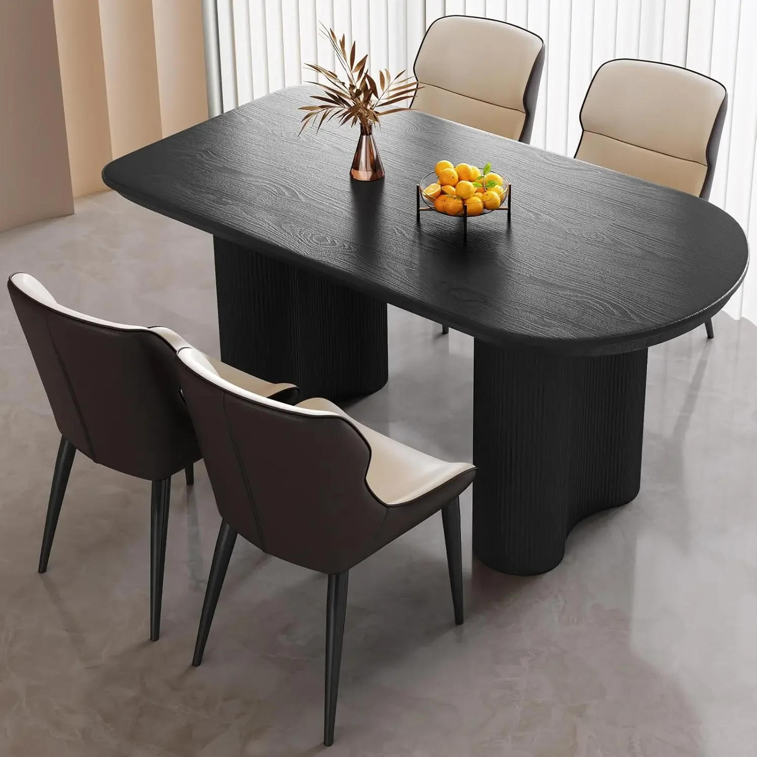 About this merchandise High quality materials: The dining desk is made from high quality materials that may face up to day by day use and resist wear and tear Please relaxation guaranteed that this set will remain in good condition for the next few years Stylish and Stable Design: Our eating desk features wavy legs that not just showcase a fashionable and classy appearance, but additionally present excellent stability and load-bearing capability You can with a bit of luck place heavy plates or decorations at the desk with out irritating about shaking or tipping over Practical and cozy chairs: The dining table entails 4 reasonable chairs, completely complementing its design These chairs are carefully crafted with sponge filling and durable metal frames to guarantee optimum comfort and help while eating With their stylish appearance, these chairs can also be used exterior of mealtime, adding a splash of class in your home Round edge design: Our dining desk adopts a rounded corner design, which distinguishes it from the conventional oblong design Soft and curved edges assist lower the risk of unintentional collisions and impacts, preserving your table and loved ones from damage Customer Guarantee: Please be aware that this product can be shipped in four boxes, that may arrive 1 or 2 days aside Easy assembly through clarification