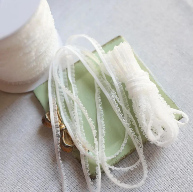 5 Meters/lot Delicate Flower Ruffle Elastic Lace Trims Thin Lace Ribbon DIY Sewing Garments Hometexile Fabric Ornaments 6mm