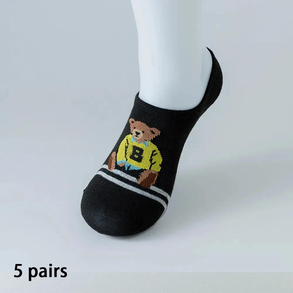 5 Pairs of Summer WOMEN'S Comfortable Socks, Cute Bear Boat Socks, Non Slip Silicone Invisible WOMEN'S Spring/summer Short Socks