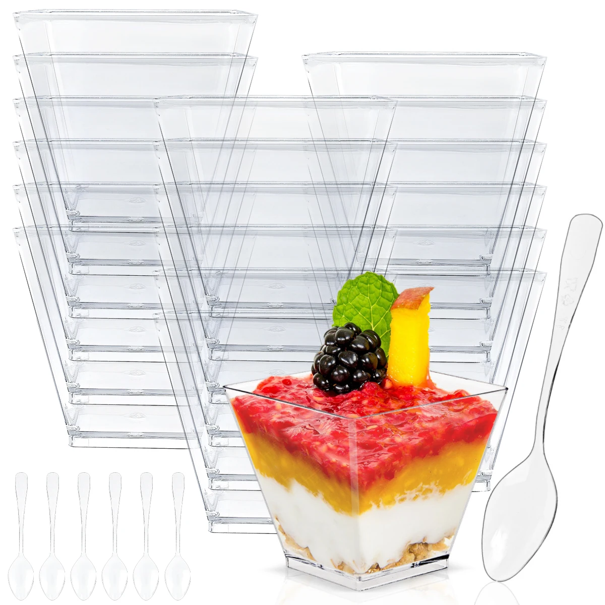 50Pcs 60ml Mini Dessert Cups Clear Plastic Party Ice Cream Cups with Lids Spoons Reusable Serving Bowl for Tasting Appetizers A: Product Name:Dessert Cup Material: Clear Plastic Size: five (Top Diameter), 2 (Bottom Diameter), 6 (Height ) Capacity: 60ml Packing List: 50 × Dessert Cup 50 × Dessert Spoon 50 ×Dessert Lid Note: 1 may be slight differences between the picture and the actual color of the commodity We will try our greatest to show you the exact color 2 enable slight dimension difference because of handbook dimension B: Parts List:50 x Dessert Cups 50 x Spoons Material: 100 percent Food Plastic Cup Mouth: five x five cm Cup Height: 4 cm Cup Bottom: 3 x 3 cm Capacity: 60 ml Application: for Dessert, Pudding, Mousse, Chocolate, Custard