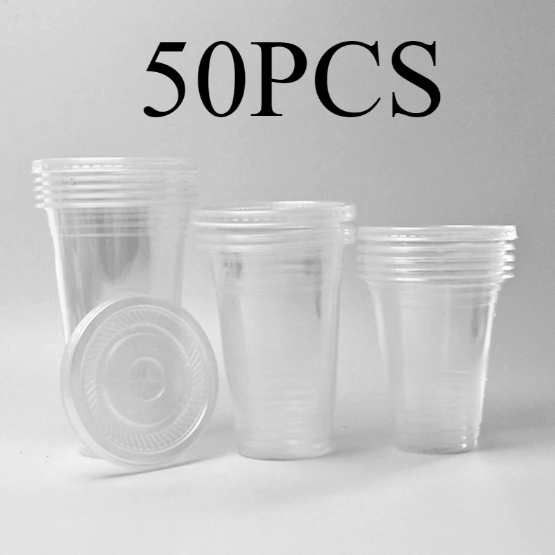 50PCS Clear Plastic Cups Juice Cold Disposable Drink Clear Plastic Cups Milk Tea Smoothie Birthday Kitchen 20OZ/16OZ/12OZ