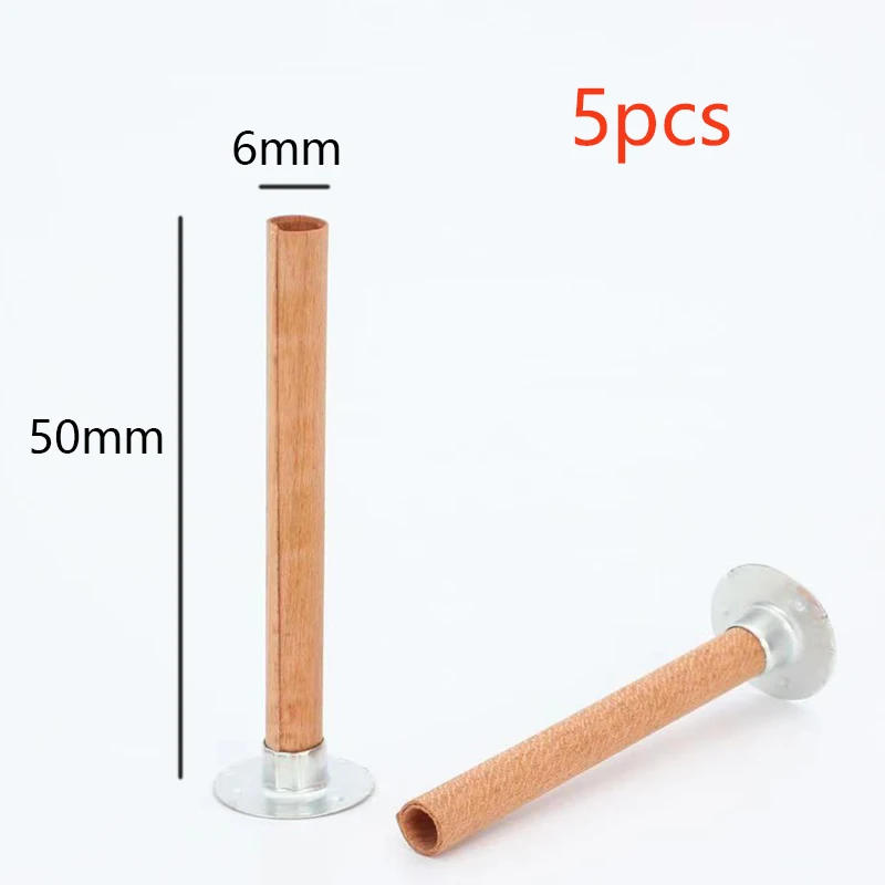 5pcs 50-95mm Original Cylindrical Wooden Candle Wicks with Support Iron DIY Handmade Soy Wax Wicks Candle Making Supplies