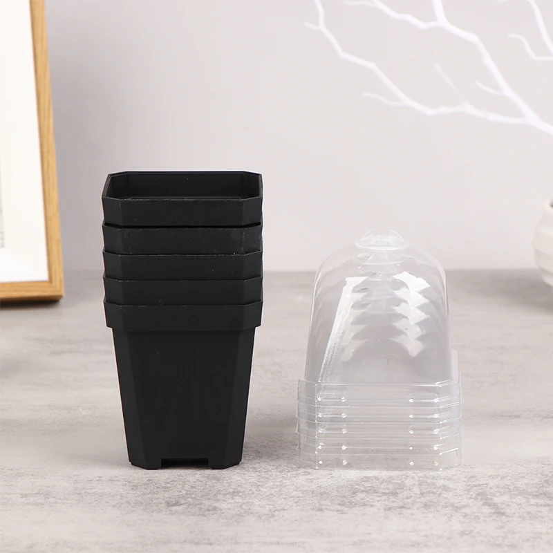 5Pcs Square Small Flower Pot Nursery Pot with Humidity Dome Transparent Gardening Pot Square Flower Starting Pots