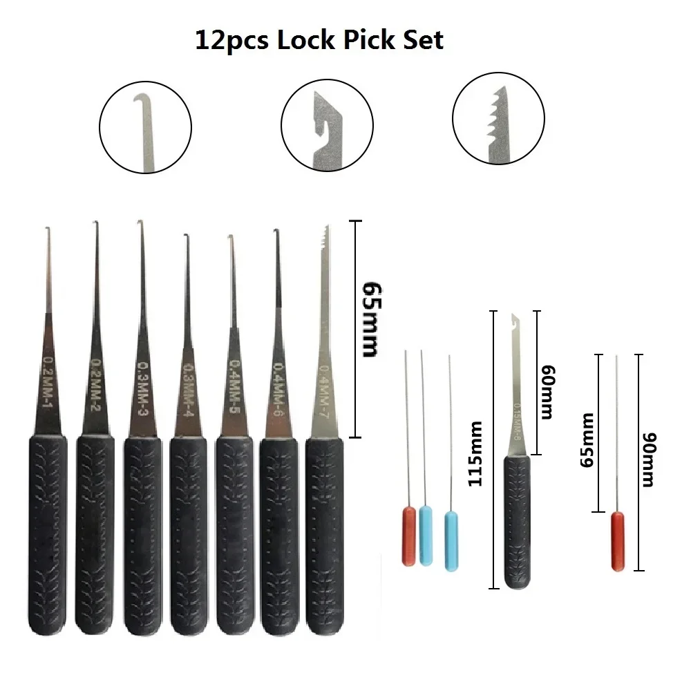 8piece Lock Pick Set Locksmith Supplies Broken Key Auto Extractor Remove Hooks Stainless Steel DIY Hand Tools Hardware Package Includes:Please appearance as reveal on possibility Figure DEAR IF YOU WANT IT TO PICK THE LOCKS , NEED BUY THE BLACK SMALL BAG TOOLS TOOLS IS TO TAKE OUT THE BROKEN KEYS , CAN NOT PICK !