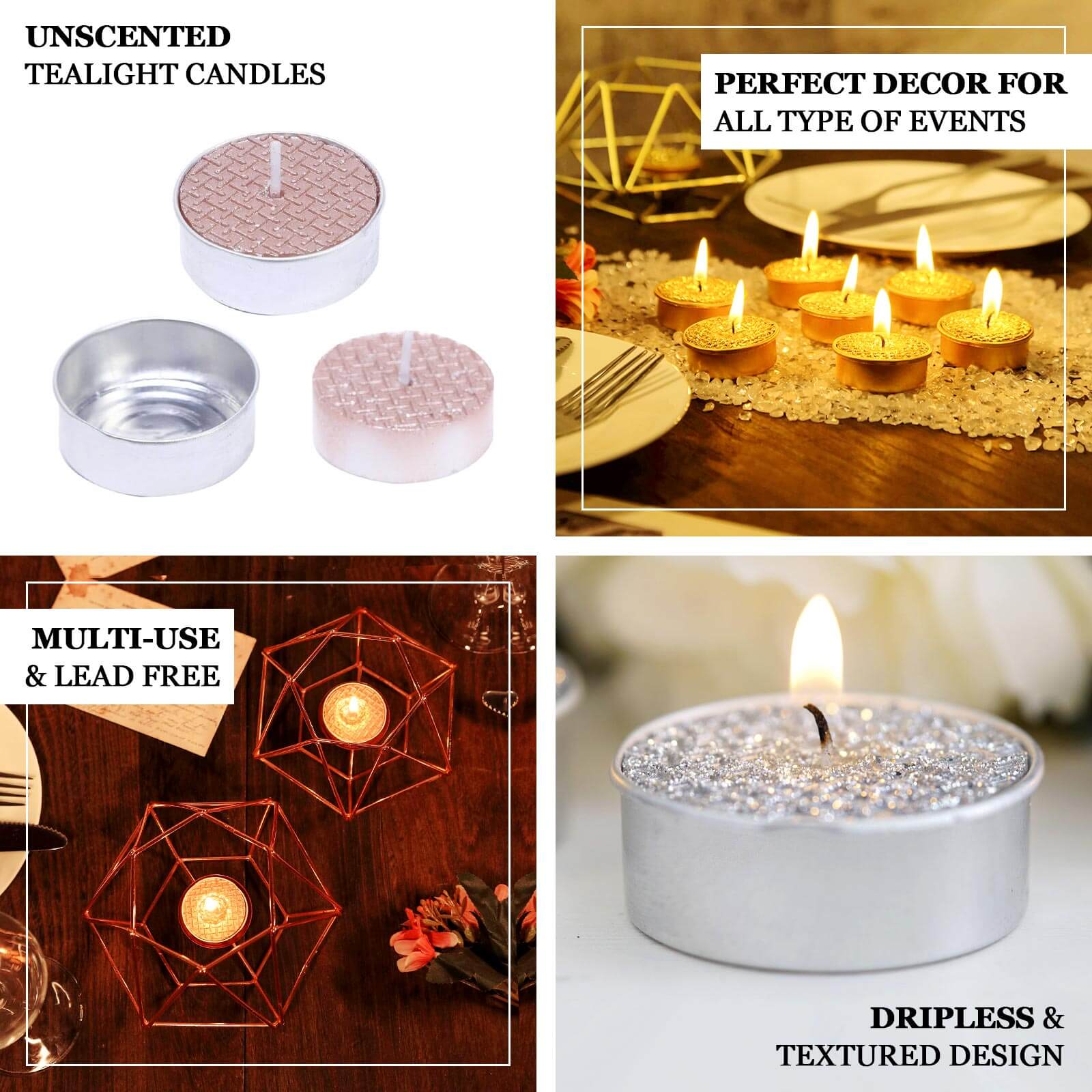 Add a Touch of Elegance with Metallic Gold Tealight Candles Illuminate your area with the enchanting glow of our nine Pack of Metallic Gold Tealight Candles These unscented dripless wax candles are the best addition to any event or home decor With their textured design and spell binding metal hues, those tea gentle candles will elevate the ambiance and add a dash of class in your area Whether you're planning a wedding, internet hosting a party, or just want to create a warm and inviting ambiance at home, these gold tealight candles are a must-have Scatter them around your venue or position them on tables, desks, mantles, or shelves to exude a magical glow that will captivate your visitors Not only do those metallic gold tealight candles provide a beautiful shimmer, but also they are lifelike and flexible Use them on their own or pair them with our lovely tealight candle holders, accessible in a variety of themes, colors, and styles, to without problems complement your occasion or wedding ceremony decor You can even wrap them in favor bags or boxes to create unique social gathering or marriage ceremony favors, or give them away as reasonable housewarming items Create a Magical Atmosphere with Textured Design Candles Transform your venue into a magical wonderland with our Textured Design Tealight Candles These metallic gold candles feature a special textured design that adds a splash of whimsy and beauty to any space Whether you're making plans a wedding, internet hosting a party, or just want to create a comfortable ambiance at home, these candles are the perfect preference The textured design on these tealight candles units them moreover standard candles, making them a hanging decorative accent The intricate patterns create a mesmerizing effect when the candles are lit, casting beautiful shadows and including depth in your decor Place them on tables, shelves, or another floor to right away increase the visible allure of your space Not only are these candles visually stunning, but they are also sensible and flexible The unscented dripless wax ensures a clean and hassle-free burn, allowing you to benefit from the magical glow without any mess Use them on their very own or pair them with our tealight candle holders to create a cohesive and stylish exhibit which will galvanize your guests Elevate Your Event Decor with Metallic Gold Tealight Candles Make a statement with our Metallic Gold Tealight Candles These unscented dripless wax candles are the perfect addition on your occasion decor, adding a dash of class and sophistication With their metal gold color and textured design, they are certain to provoke your company and create a memorable ambiance Whether you're making plans a wedding, a birthday party, or some other special occasion, those gold tealight candles are a versatile and stylish preference Scatter them round your venue to create a warm and inviting ambiance, or use them as centerpieces to add a touch of glamour in your tables The chances are limitless with these exquisite candles Not only do those candles provide a dazzling visual appeal, yet also they are life like and easy to apply The unscented dripless wax ensures a clean and mess-free burn, permitting you to benefit from the beautiful glow without any hassle Plus, with a pack of nine tealight candles, you'll need a lot to decorate your complete venue