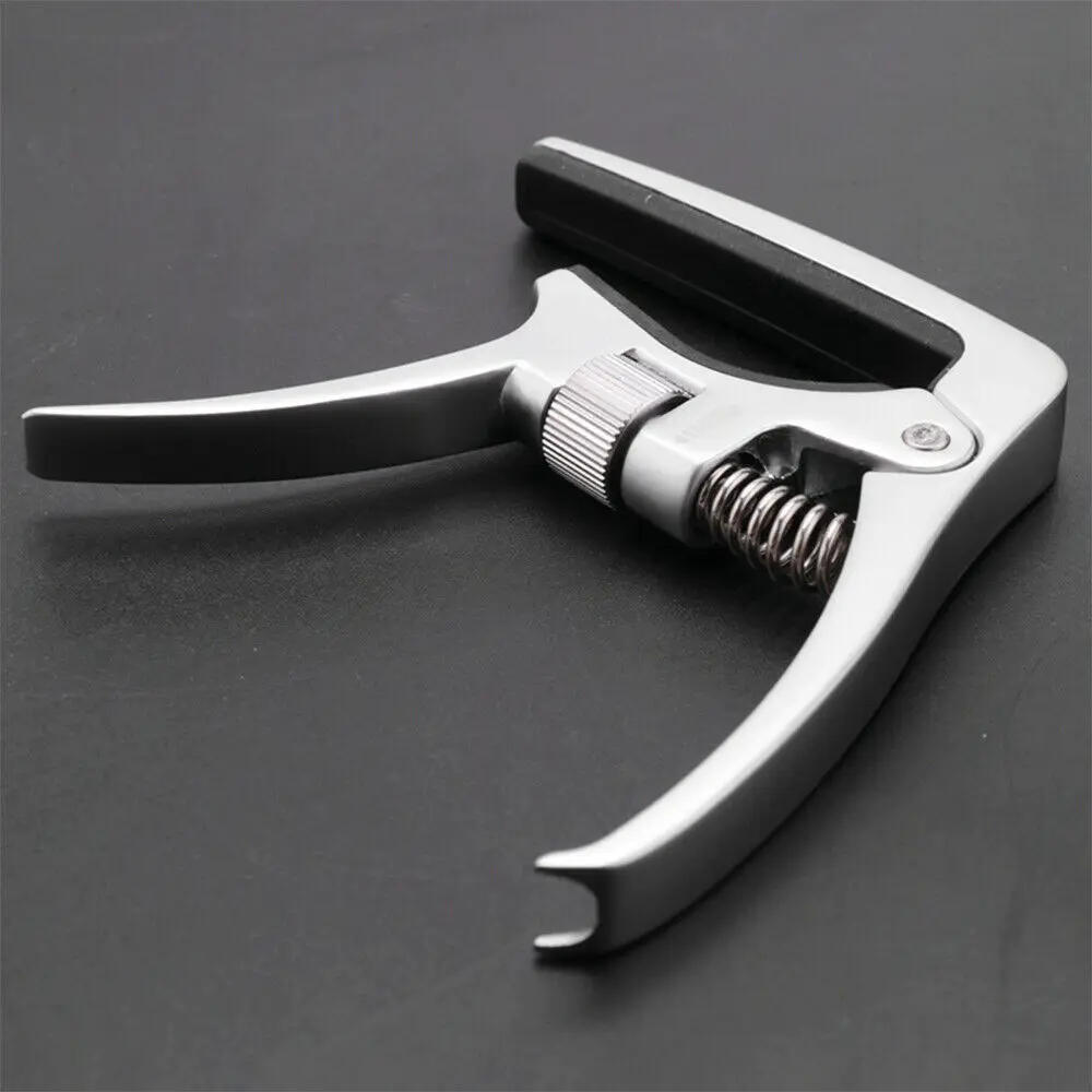 AROMA AC-30 Guitar Capo for Acoustic Guitar and Electric Guitar Pressure Tension Adjustable Guitar Accessories Applicable to ballad guitar and electrical guitar High-grade Metal Material Dynamic Appearance Design Proper spring tension of adjustable clamp and superior silica gel pad Color: silver material: steel Product size: about eight * 9 * 1cm Package Contents: 1 * capo