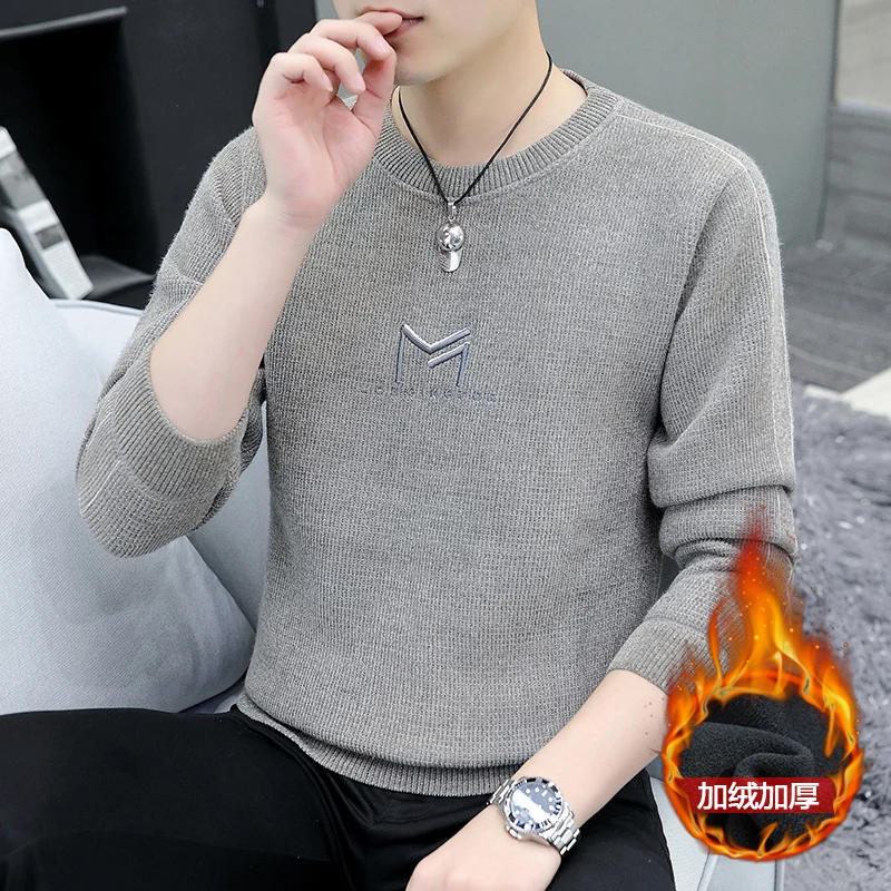 Autumn and winter fluffy warm loose round neck pullover men's casual all-match knitted base shirt
