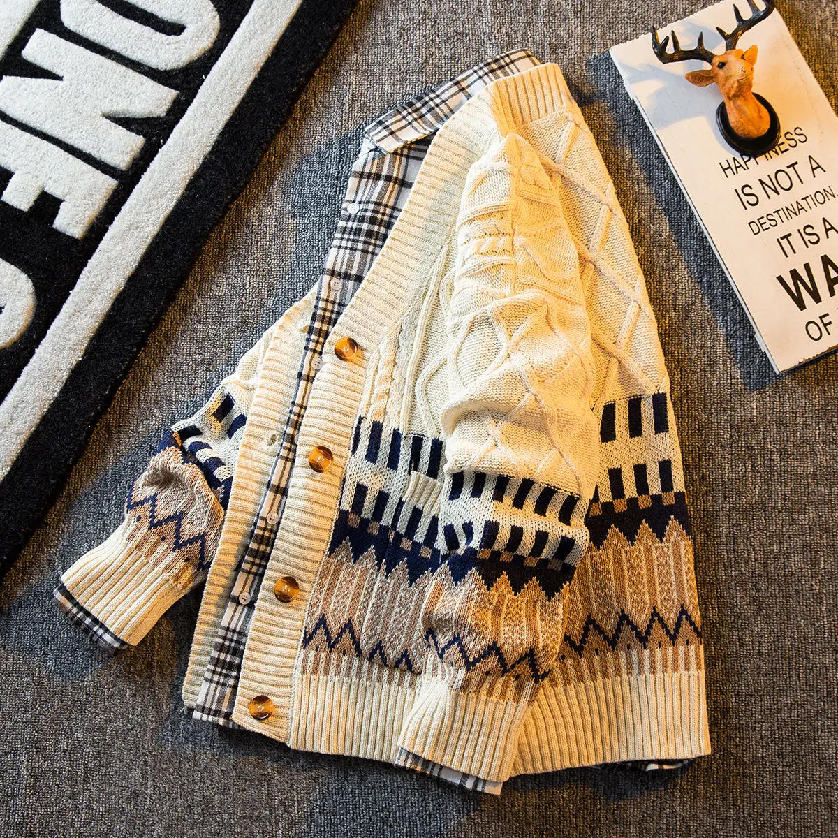 Autumn Winter Handsome Rhombus V-neck Sweater Cardigans Men's Loose and Handsome Casual Knitted Cardigan Jackets Male Clothes