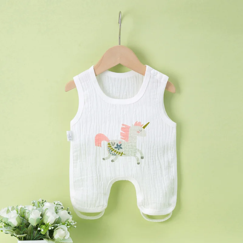 Baby Girls Clothes Half Back Gauze Cotton Sleeveless Girl Bodysuit 0-24 Months Newborn Thinly Cartoon Boys Clothing Toddler