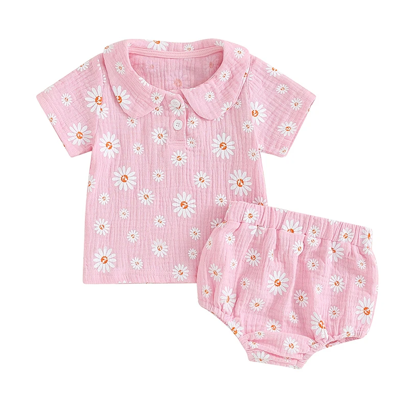 Baby Girls Shorts Set Flower Print Short Sleeve T-shirt with Elastic Waist Shorts Summer 2-piece Outfit