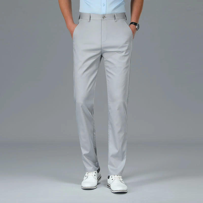 Bamboo Fiber Luxury Straight Pants Men Spring Summer New Business Breathable Casual Long Formal Suit Trouser Male