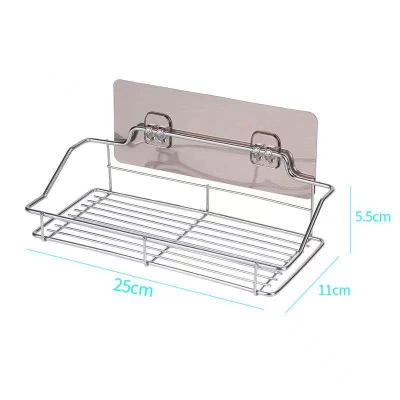 Bathroom Shelf Stainless Steel Shower Organizer Basket Kitchen Storage Shelf Wall Mounted Storage Rack with Adhesive Sticker