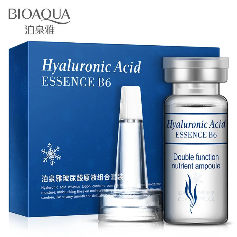 BIOAQUA 10pcs/lot Moisturizing Vitamins Hyaluronic Acid Serum Facial Skin Care Anti Wrinkle Anti Aging Collagen Essence Liquid Details: Brand: BIOAQUA Origin: China Net Wet.:5ml / bottle Shelf Life:3 Years Suit for: All kinds of skinespecially for dry skin Package: 1 set BIOAQUA Hyaluronic AcidCombination packages10 bottles Ingredients: water, glycerol, propylene glycol, dipotassium glycyrrhizinate, allantoin, sodium hyaluronate, vitamin H, vitamin B3, vitamin B6, vitamin B2, vitamin B1, yeast Features: Rich in hyaluronic acid ingredients to help the skin to add water to relieve dryness Sodium hyaluronate, glycerol, folic acid, a variety of vitamins and other nourishing moisturizing ingredients Gentle care of the skin, deep nourish Texture clear and moist, fresh and not sticky Delicate and smooth, easy to absorb Combination set, a set of 10 bottles, more affordable Beautiful outer packaging, good quality, whether it is for themselves or as a gift is very suitable