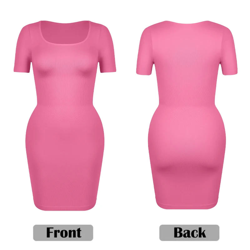 Body Shaper For Women Under Dress Seamless Shapewear Control Slips Short Sleeve Square Neck Tummy Control Full Slip