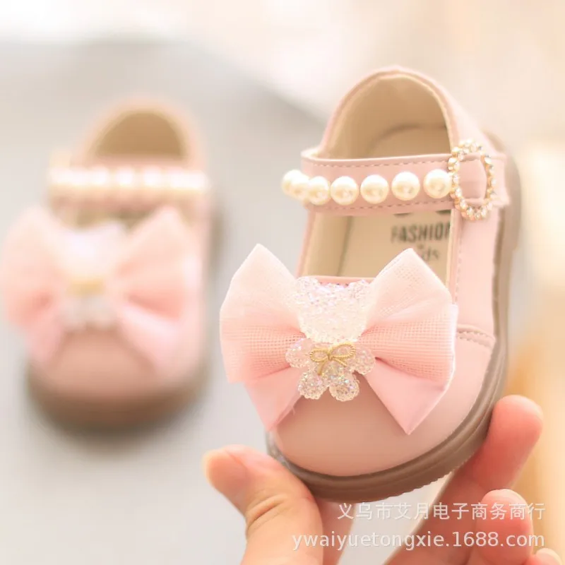 Cartoon Bow Square Mouth Toddler Shoes Kids Shoes Girls Baby Party Wedding Dance New Princess Leather Shoes Children Sneakers