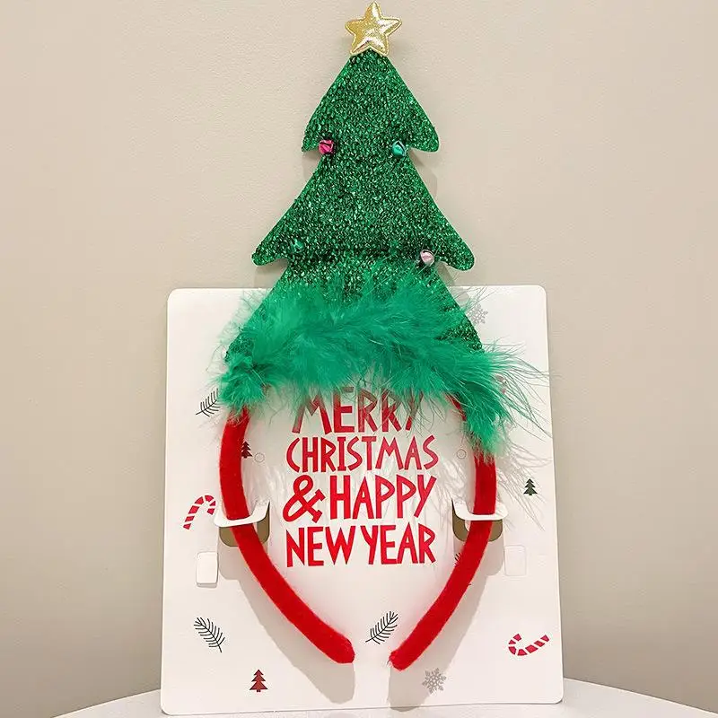 Children Christmas Red Bows Headband Women Girl Classic Elastic Reindeer Antler Santa Hair Hoop Xmas Party Headbands Accessories