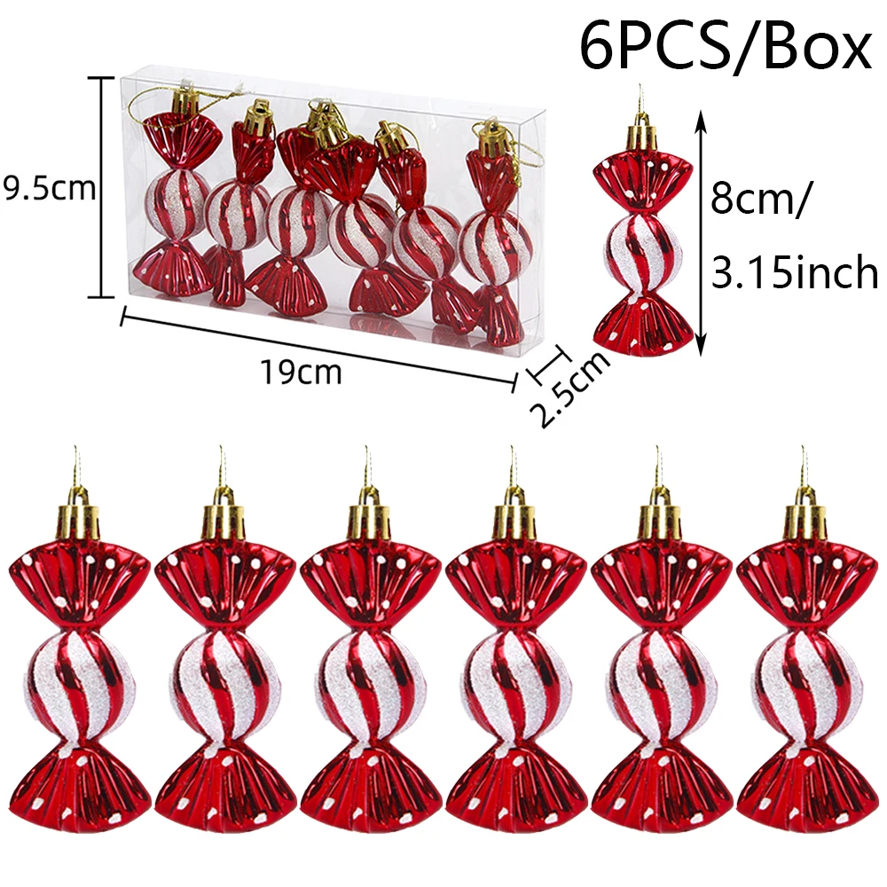 Christmas Candy Ornament Set Xmas Tree Decor Hanging Red Christmas Party Lollipop Candy Cane Pendant Decorations New Year Gift