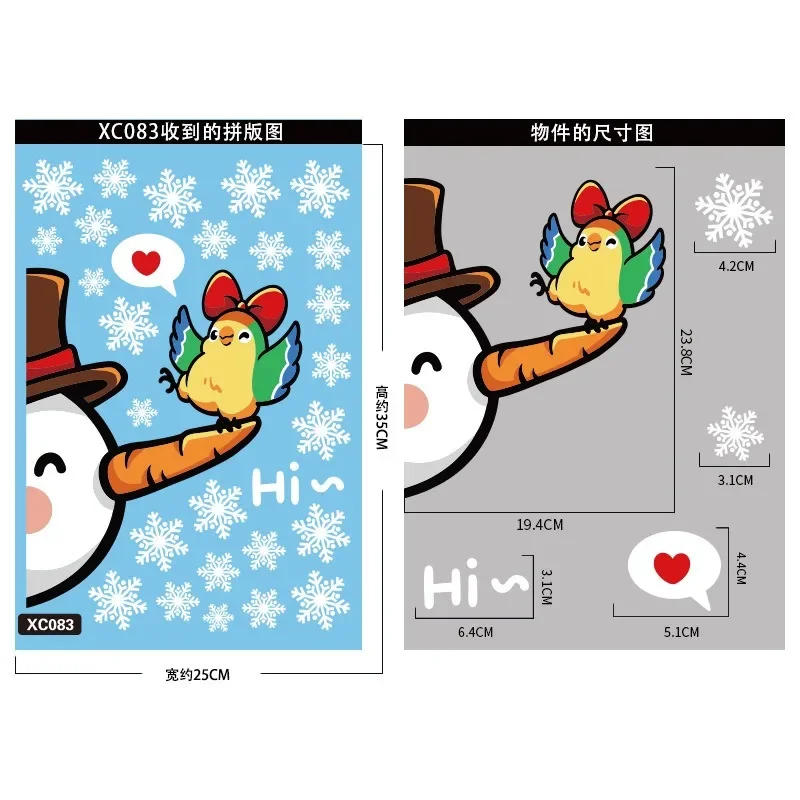 Christmas Santa Claus Window Stickers Xmas Tree Hummingbird Glass Wall Stickers Reindeer Snowman White Snow Door Static Stickers