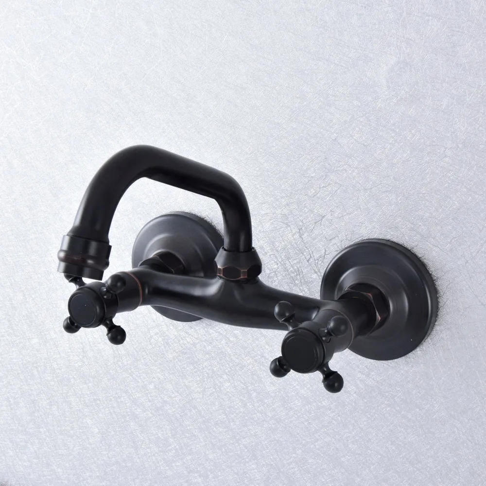 Classic Black Oil Rubbed Brass Swivel Kitchen Sink Faucet Wall Mounted Bathroom Basin Mixer Dual Handle Tap Lsf735