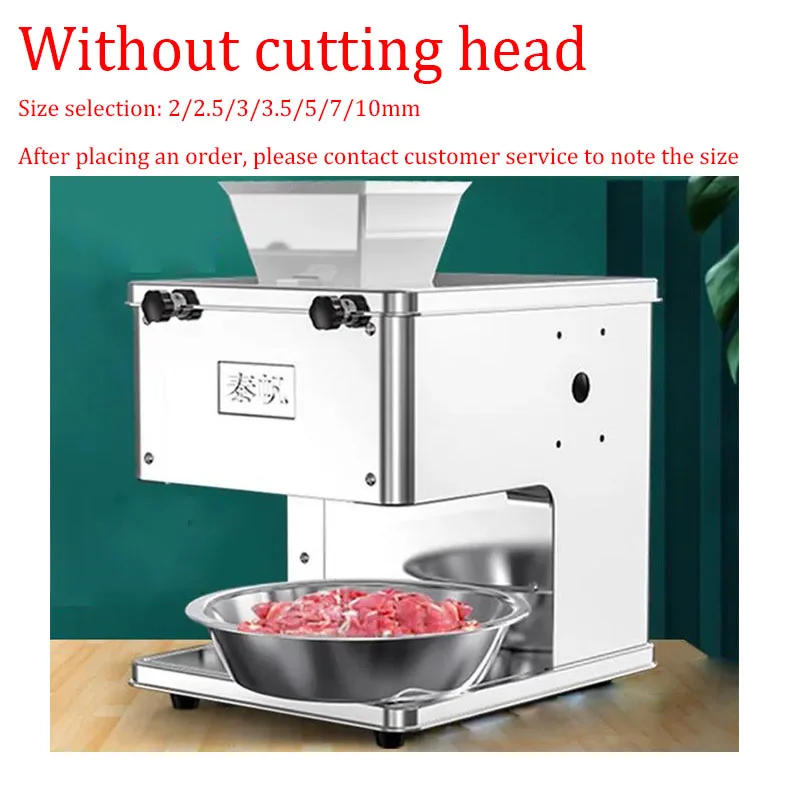 Product parametersProduct name: stainless-steel meat cutter Product voltage: 220V Blade rotation speed: 170r/min Slice output: 160kg/h; 350lb/h Rated power: 850W Shredded output: 80kg/h ;170lb/h Machine weight: About 26kg Waterproof rating: IP68product detailsThe commonest size of total dishes/meat is: three blade cutting length is determined by the space between the knife groups, and the gap between the blade is never adjustable. The chopping size is dependent upon the knife group spacing. The knife organization spacing can't be adjusted. The size would be replaced by way of 2/2/3/3/5/7/10/15/21mm. If chopping cooked meat, it is strongly commended to choose knife organization no longer less than 3. The machine can lower vegetables, corresponding to cabbage, greens, kelp, peppers, inexperienced peppers, fungi, dried tofu and different delicate things. three The following foods cannot be reduce in the machine: complete anxious end result and vegetables,such as potatoes. boned meat and frozen meat aren't suitable, in any other case it is simple to interrupt the blade and jam the machine. It is also irrelevant if you wish to reduce the meat into puree. If you want to cut difficult vegetables, please use the facet port:Cut meat and vegetables, shredded dumplings and mince(1)2-in-1 VEGETABLE AND MEAT CUTTING---:the machine adds a special vegetable and fruit cutting head. STAINLESS STEEL BODY---The product is made of fine stainless steel, which is anti-rust, anti-corrosion and additional durable. (2)REMOVABLE BLADE---The knife can be removed and cleaned at any time. It is made from stainless-steel and is more durable. (3)PRODUCT DETAILS---There is a manage below the machine, if the mechanical device is stuck, you have to slice it manually; there is a non-slip pad at the bottom of the machine, which is more secure to use. NOTE---The machine can't cut frozen meat and meat with bone, please do not put a whole challenging vegetable into leading physique of the machine, or it'll damage the blade, please use the side cutting port be aware :1. If the product is updated, we will ship the newest style. The look may perhaps change, but the parameters and purposes stay unchanged. 2. If the manufacturing process of mechanical products calls for welding. There might be slight welding lines on the welding point. This is normal, no longer a flaw. If you mind, please function your order carefully. or contact the vendor to ascertain the detailed picture. 3. All machine length and weight measured via our hands,maybe have some deviation,please don&;t mindsDelivery way:1 you select "seller&;s shipping Method" we can show you how to manage the cargo via sea and produce in your nearest seaport! - If CFR through sea, that means, after arriving vacation spot seaport, the client should pay the vacation spot port costs (such as terminal handling charges, office work charges, storage charges, ect), tax to do the customs clearance and decide up the products through technique of yourself. 2 you choose "By Express " we will provide help to to rearrange the cargo via overseas explicit (such as DHL / TNT/ FEDEX /ARAMEX, ECT) and instantly convey in your deal with (DOOR TO DOOR SERVICE)! If cargo by way of express, after arriving , the customer solely deserve to pay tax and assist shipping company to do the customs clearance is ok. three you choose " By Air " we will help you to arrange the shipment through aircraft and produce in your nearest airport! after arriving the airport , the customer should pay tax to do the customs clearance and decide up the goods by way of means of yourself.(YUAN)