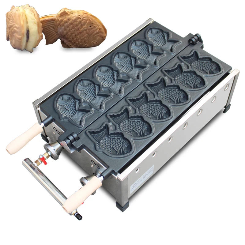 Commercial 6pcs Fish Shape Waffle Maker Taiyaki Machine LPG Gas Waffle Cone Maker fish Model Non Stick Dessert machine