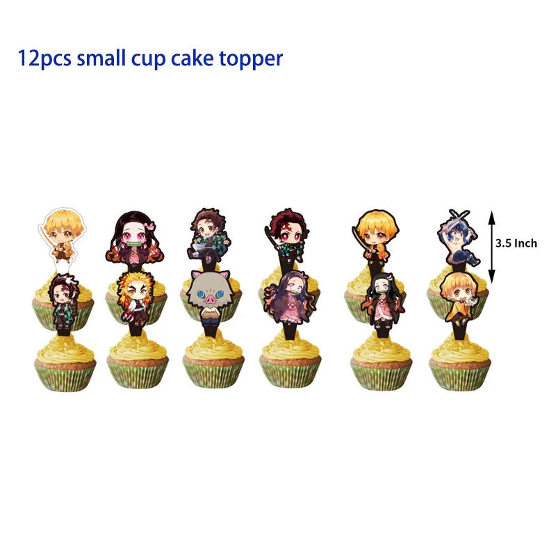 Demon Slayer Birthday Party Decoration Balloon Banner Cake Topper Demon Slayer Tableware Party Supplies Baby Shower