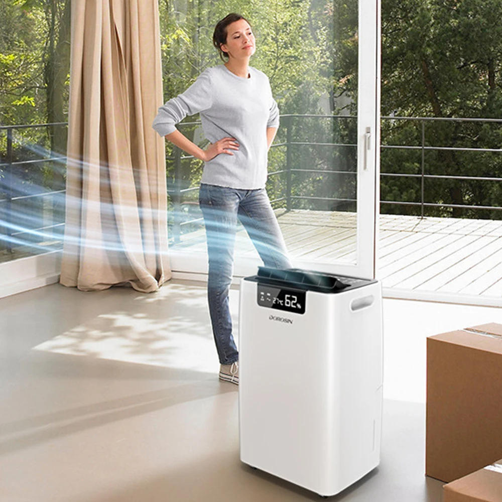 Parameters:60L/Day Air Dehumidifier High Efficiency Household Basement Dehumidification Machine 695W Large Power Clothes Drying Machine Name: DOROSIN Dehumidifier Model: ER-660E Voltage: 220V-240V(50HZ-60HZ) Rated power: 695W Size: 420mm*317mm*673mm Weight: 23 Refrigerant: R410a Water tank capacity: 8L Dehumidification efficiency: 60L/day (30℃, 80%RH) Suitable for : 10㎡-180㎡ Compressor type: PanasonicFunction:Dehumidification, negative ion purification, auxiliary dryingER-660E dehumidifiersuitable for total domestic dehumidification of 10㎡-180㎡, stable dehumidification means of 60L/day, 8L large-capacity water tank, knowing immediate drying of the whole home for room discipline of 10㎡-180㎡, like minded for dehumidification in villas, bedrooms, offices, bathrooms, underground warehouses, wine cellars and other places/day high functionality dehumidification (30℃, 80%RH)8L lareg skill water tank,can be related to a drain three-in-one: dehumidification + destructive ion purification + auxiliary drying,one machine with three purposes water on the floor, prevent furniture from being deformed and moldy, and bid farewell to the odor of micro organism in the toilet ion air purification function, makes you're feeling like you are in the wooded area after the rain humidity detection keeps completely happy humidity in the course of the day indoor humidity can be set freely, and the humidity fluctuate for human health and comfort is 50%RH-60%RH compressorEfficient, short dehumidification, reliable and durable for two decades to apply types of safety protection: water complete protection, overload protection, compressor protection, overcurrent protection, filth protection of core components, anti-freezing defense LED electronic show screen, soft to operate.