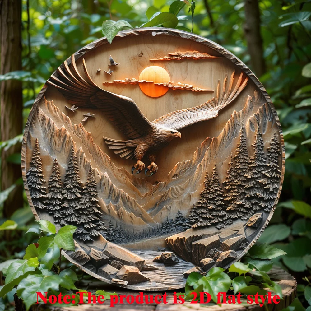 Eagle Wreath Aluminum Sign - 8X8 Inch Round Metal Decor For Home, Cafe, Apartment & More - Durable, Easy-To-Clean Wall Art