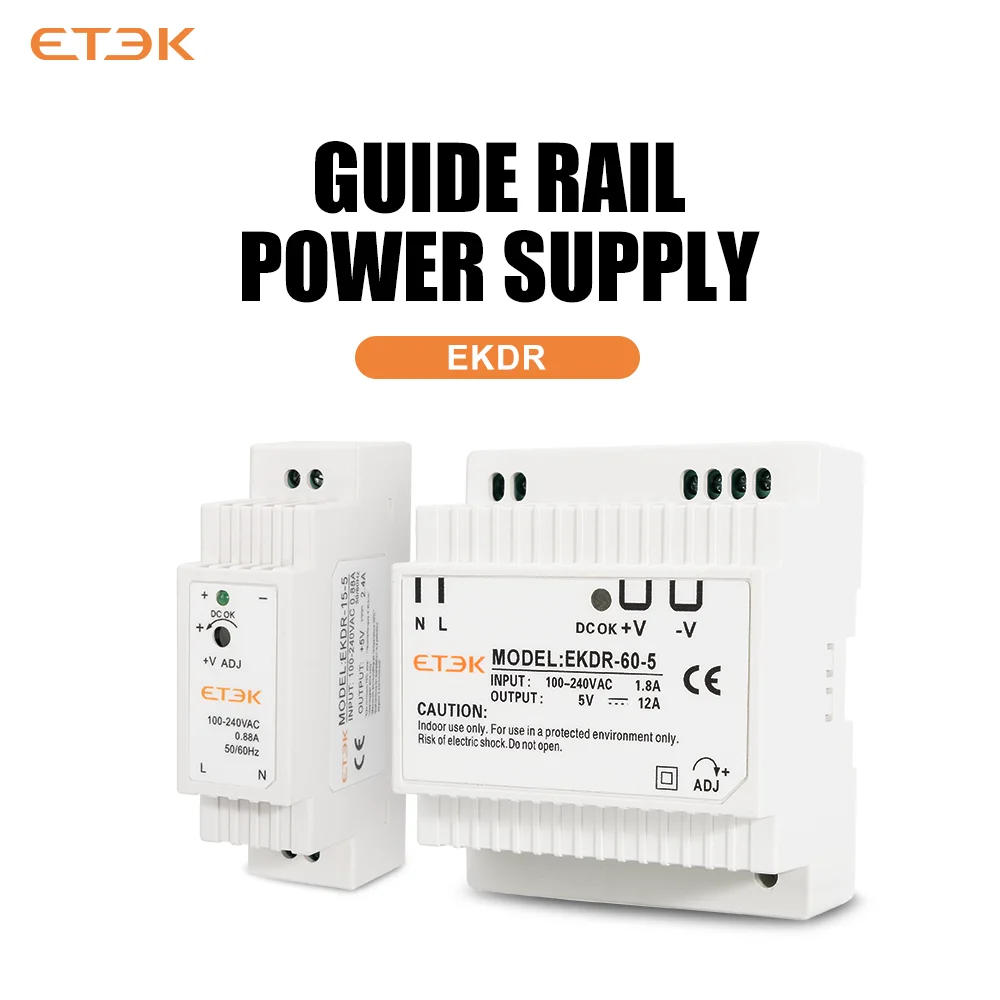 ETEK DR-15/60 Series 5V 12V 24V Output Voltage 15W 60W Din Rail Type Small Volume Switching Power Supply Transformer EKDR