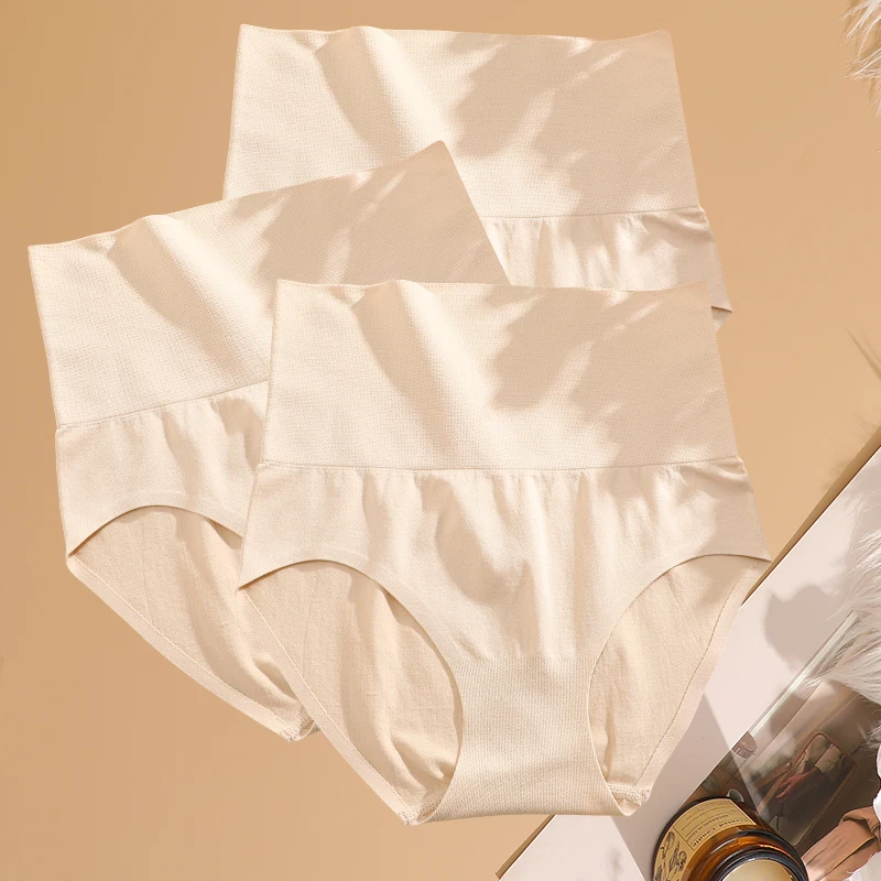 FINETOO 3PCS Women's High Waist Underwear Classic Solid Color Hip Lift Panties Comfortable Large Size Underwear Tight Belly Pant
