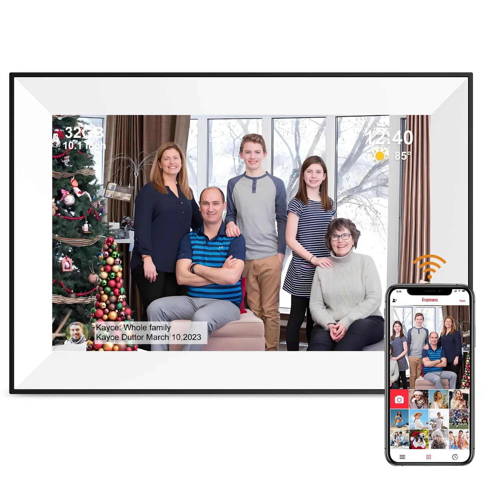 Specifications Screen size: 10 inches (16:10) Resolution: 1280*800 Memory capacity: 32GB Supported memory cards: Micro SD card (up to 32GB, not included) Available interface languages: Various Image format: JPEG/BMP/GIF/PNG Video formats: MP4, MKV, MOV, MPG, 3GP Wireless network 2 Package Included 1 x 10" Digital Photo frame 1 x present box, 1 x energy adapter 1 x Digital Picture Frame Stand 1 x Manual Features 【WiFi Connectivity】Equipped with WiFi capabilities, the electronic photograph body allows effortless and wi-fi transfer of images and movies throughout the "Frameo" APP 【Interactive Touch Screen】Featuring a 15 with a high decision of 1280*800, the photo body provides contact control capabilities Simple display screen taps facilitate smooth operations like sliding, hiding, deleting, and uploading pictures 【Large Storage】Equipped with a generous 32GB of built-in memory (part of which is preoccupied by way of the system), this electronic picture body affords satisfactory area for picture garage 【Ideal Present】As an ideal present for birthdays or particular occasions, this digital photo body is bound to please your family members 【Appearance】Wooden grain frame, beautiful and delightful frame, like a mystical magic ring, will for all time freeze and cherish the most exquisite moment of our lives Reminder 1 digital photo body does not have a battery and needs to be inserted into the original 5V adapter in the field 2 digital picture body supports Frameo software, and is free to transfer pictures and videos with unlimited records Only 10 photos and 3S 1080P quick movies would be transferred at a time three digital photograph frame comes with RAM 1GB ROM 32GB, the integrated software of the photograph frame system will occupy some memory, and the actual cupboard space is just 27GB four Only use the original 5V adapter, no longer different energy adapters, in any other case the electronic photo frame will not boot and burn the motherboard The best option for giving gifts, could be given to moms on Mother's Day, and is the first desire amongst diversified gala's Frameo app with built-in 32GB memory for photograph frames High definition photos, automatic backup Photo interval Zoom Hide/ post Shuffle Date received Date taken Delete Adjust brightness You can percentage this photo frame along with your family and add pictures anytime, anywhere Weather and time can be displayed at the photograph body Best Gift ChoiceThe establishment of photograph frames is to allow humans to share useful reminiscences and moments of being with their family members every day How to download APP