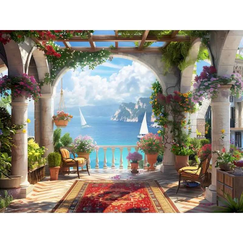 GATYZTORY Acrylic Painting By Numbers Balcony Landscape Coloring On Numbers For Adults Diy Gift Home Decors Paint Kit Handmade