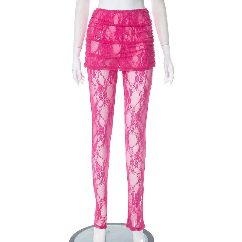 Gtpdpllt Sexy Pants Pink See Through Lace Mesh Leggings Nightclub Outfits Baddie Streetwear Women Bottoms Fashion 2023 Trousers