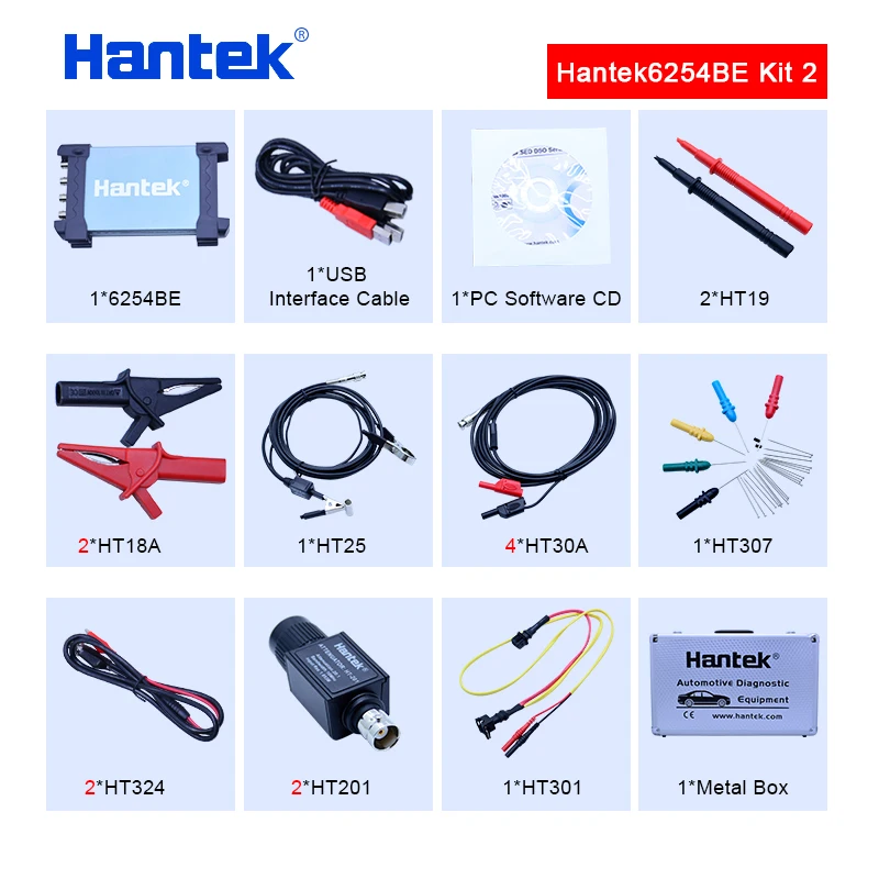 Hantek 6254BE Digital oscilloscope kit 250MHz Bandwidth Automotive Oscilloscopes Car-detector 4 CH 1Gsa/s USB PC Osciloscopio