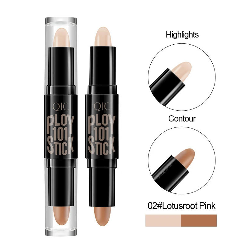 BRAND: QIC Product name: Double head high lightshadow repair stick Net content:28G×2 quality guarantee period: 3 years Color code: 01#lvory +dark brown 02 #lotus root pink+ light brown 03 #Natural color coffee color Product weight: 21.7G