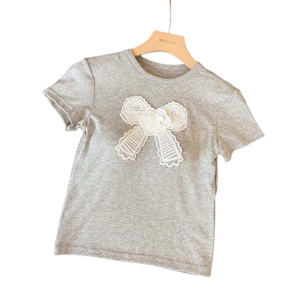 Product Type:Korean Bow T-shirts Size:Clothing size 45cm(17),Chest circumference 68-92cm(26); Shoulder width 34cm(13),Sleeve size 12cm(4) Material:Cotton Color:Pink,White,Black,Blue,Grey Package contains:1Pc Korean Bow T-shirts 1 to guide measurement,please allow a difference of 1-2 cm(0 in) 2 to many factors similar to exhibit brightness and light intensity,the precise colour of this product may be slightly diversified from the image displayed on the website
