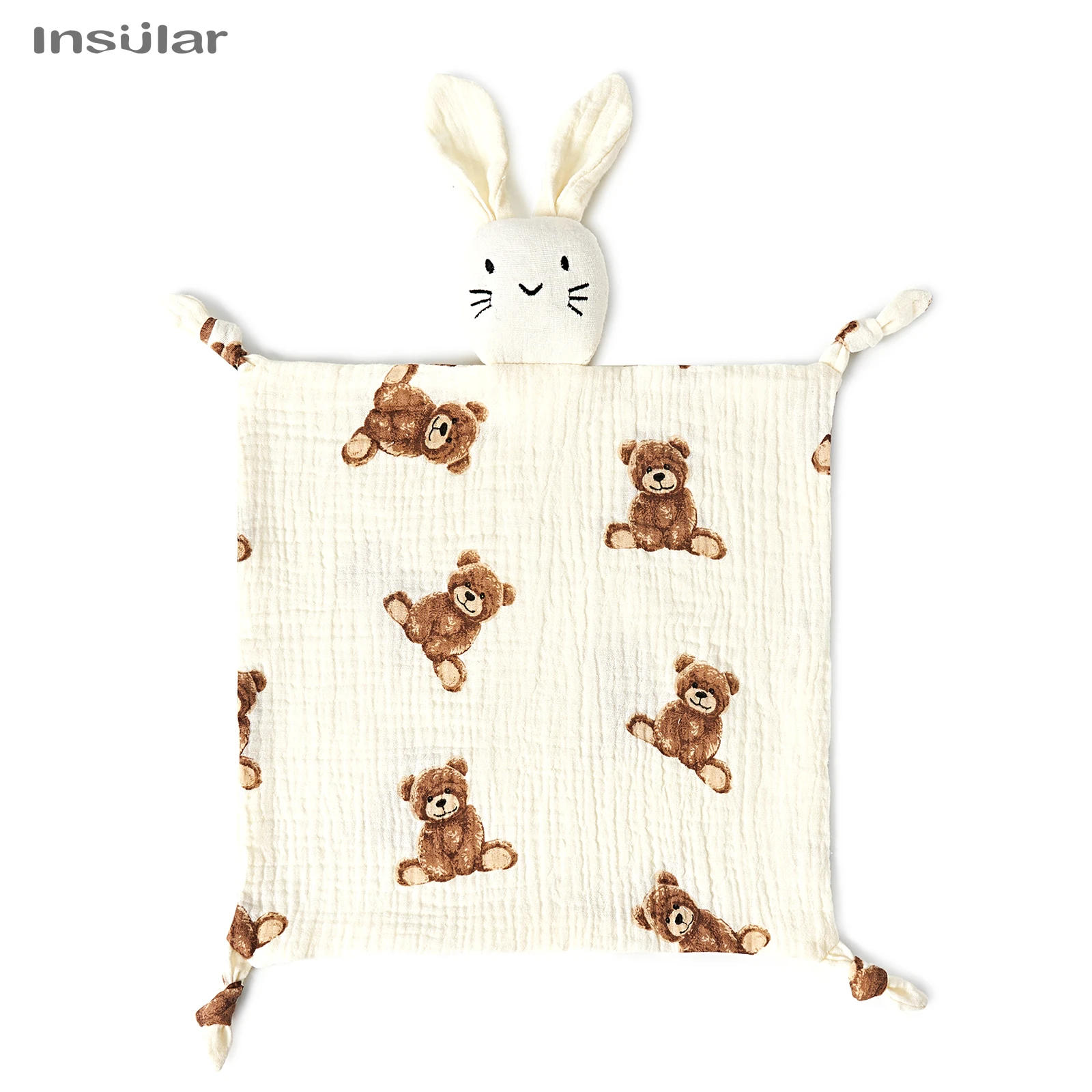 INSULAR Baby Bibs Newborn Appease Towel Infant Handkerchief Kids Sleeping Cuddling Facecloth Stuffed Rabbit Double Cotton Muslin