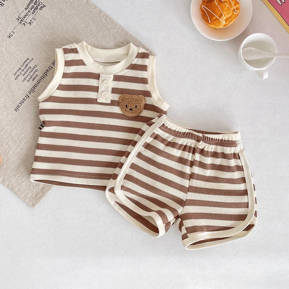 Ircomll Summer INS Bear Comfortable Vest+short Suit Baby Newborn Items Baby Clothes Set Summer Infant Soft Outwear For 0-3Y